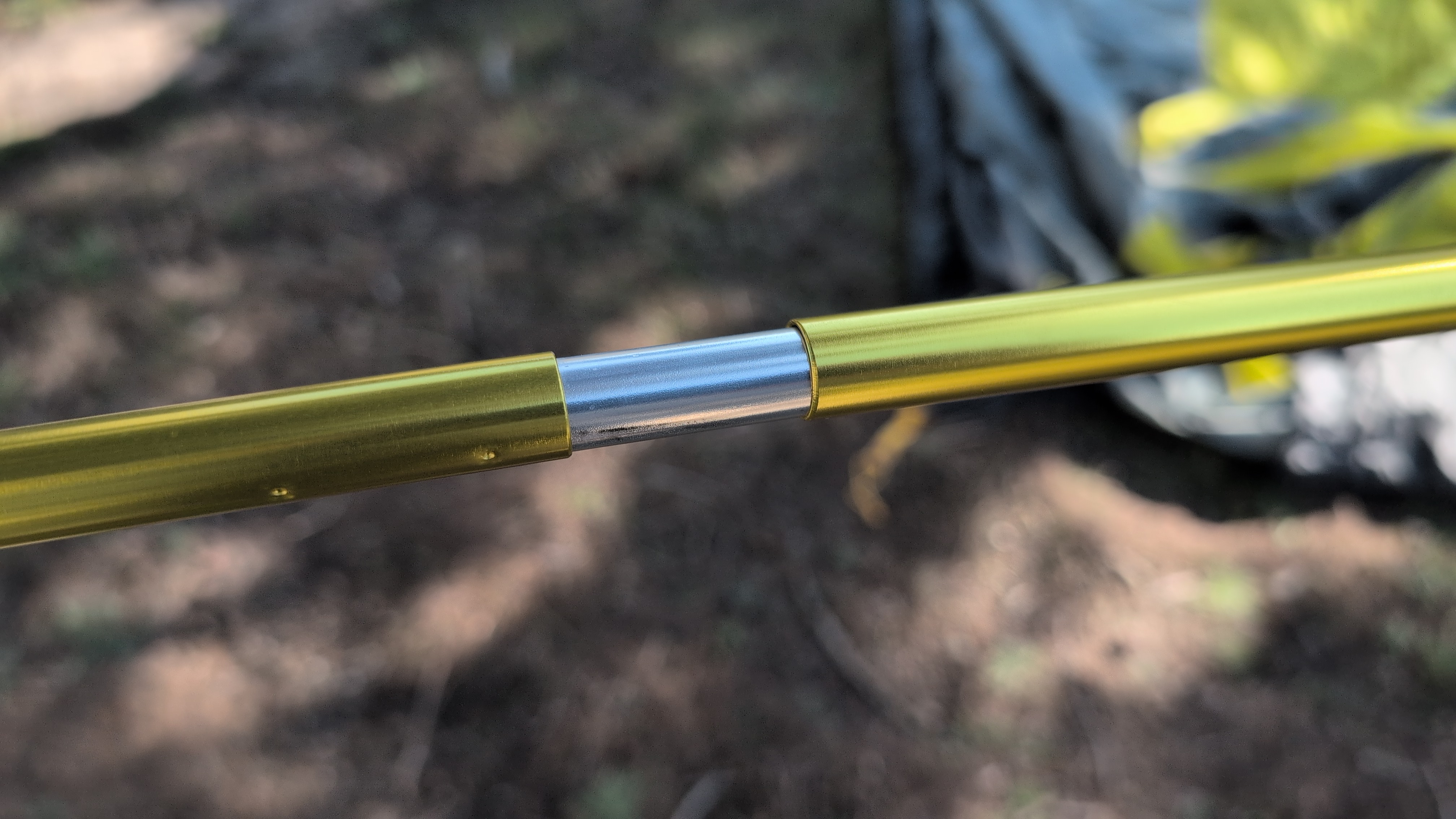 Snap the two identical yellow/orange poles together. Ensure every joint clicks securely.